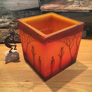 Die Windlichter sind mit Dekosteinchen und einem schönen Glas ausgestattet, in dass ein Teelicht oder eine kleine Stumpenkerze gestellt wird. Durch die hohe Transparenz des Wachses erleuchtet die Kerzenflamme das Motiv und hebt dieses auf sehr dekorative Weise hervor.