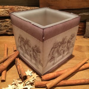 Die Windlichter sind mit Dekosteinchen und einem schönen Glas ausgestattet, in dass ein Teelicht oder eine kleine Stumpenkerze gestellt wird. Durch die hohe Transparenz des Wachses erleuchtet die Kerzenflamme das Motiv und hebt dieses auf sehr dekorative Weise hervor.